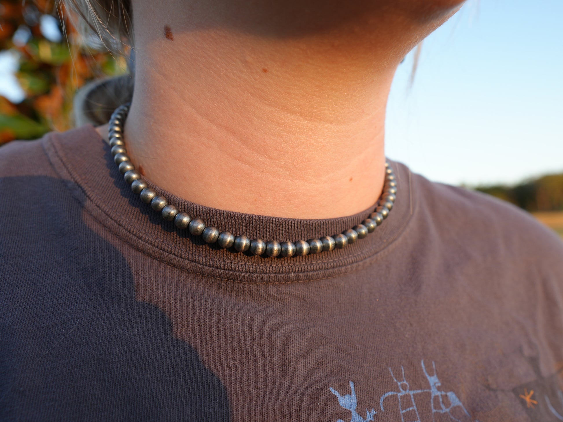 16 Inch 6mm Sterling Silver Beaded Necklace